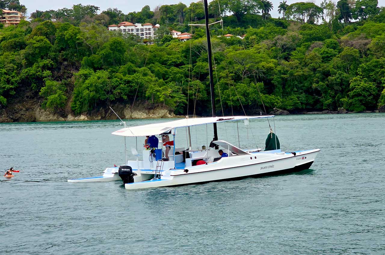 The Spanish Dancer: is a 37-foot Mac Gregor sport catamaran with a capacity of 12 passengers, perfect for small groups wedding proposal, honeymoon charters, exclusive premium menu and VIP service. This boat is confortable and maneuverable craft and is recommended for those who like being close to the elements and truly enjoy the feeling of the sun on your face and the sea air in your lungs.
